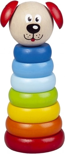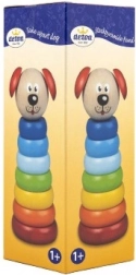 Piramida Kužek Detoa iz lesenih kosov podpira razvoj fine motorike in domišljije pri otrocih že od 1. leta. Izdelana je po strogih varnostnih standardih EU.