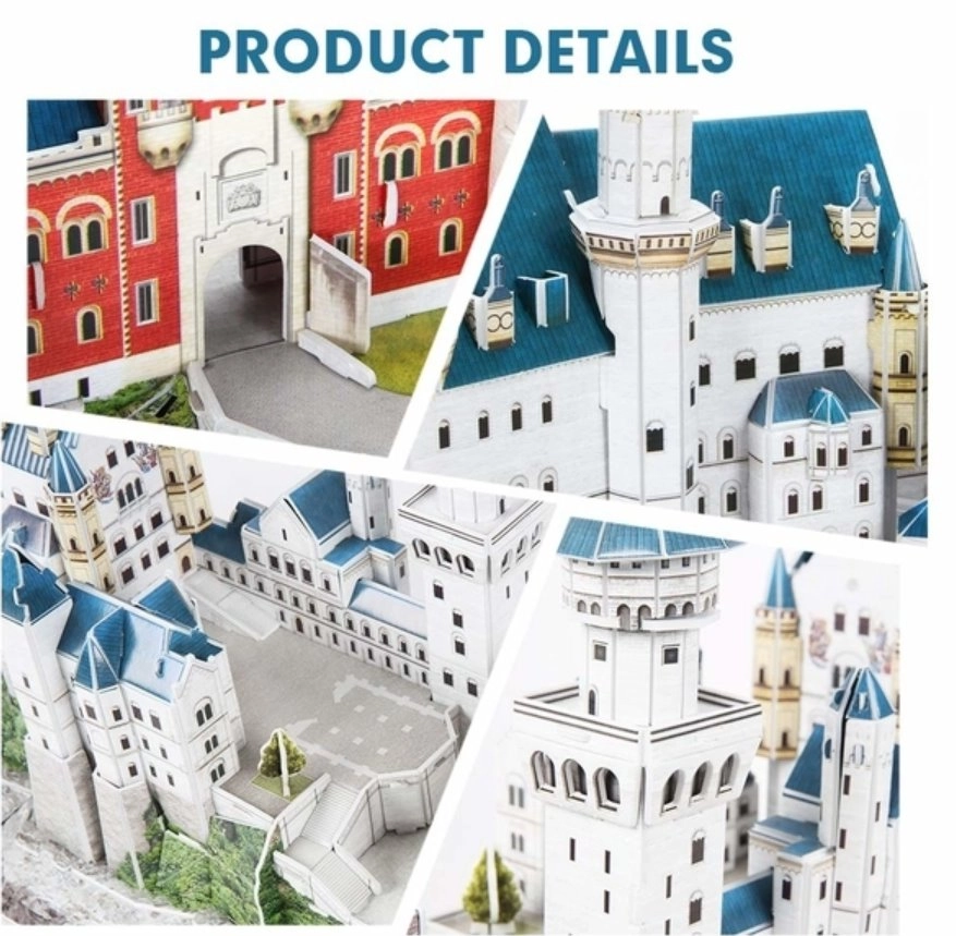 Zgradite ikonični grad NEUSCHWANSTEIN, enega najbolj znanih nemških simbolov, ki ga je dal zgraditi Ludvik II. Bavarski. 3D sestavljanka CUBICFUN iz edicije NATIONAL GEOGRAPHIC izstopa po natančni izdelavi in kakovostnem materialu – kosi iz približno 3 mm pene, prevlečeni z laminiranim potiskanim papirjem, zagotavljajo stabilnost in detajlen videz.