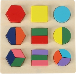 Ta odlična lesena sestavljanka omogoča otrokom vajo logičnega mišljenja in prepoznavanje oblik. Igra temelji na preprostem principu prilagajanja oblik v prave odprtine, kar prispeva k razvoju kognitivnih sposobnosti otroka. Primerna za učenje imen barv in osnov matematike, saj sestavljanka vključuje različne oblike in barve za stimulacijo vizualnih veščin.