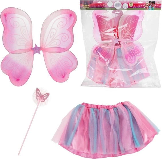 Velika roza krila z belimi vzorci, ki spominjajo na pravega metulja. Popolna za kostume in preoblačilne igre.