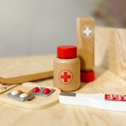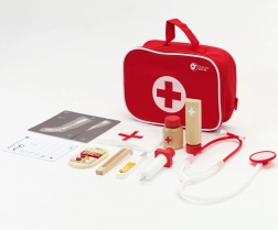 Komplet od Classic World vsebuje vse, kar mali zdravnik potrebuje za igro zdravnika. Otroci lahko poslušajo srčni utrip pacientov (plišasti medvedki, punčke) s pomočjo stetoskopa, 'merijo' temperaturo s termometrom, 'dajo' injekcije ali ponujajo nujna zdravila. Igra zdravnika ni le priljubljena igra vlog, ampak tudi poučevanje empatije in sodelovanja, kar je zelo pomembno za socialne odnose. Ta komplet podpira razvoj domišljije in učenje reševanja problemov.