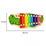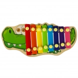 Odkrijte veselje do glasbe s prikupnim ksilofonom v obliki krokodila. Zahvaljujoč osmim različnim tonom bodo otroci zlahka zaigrali prve preproste melodije. Igranje na instrument spodbuja kreativnost, potrpežljivost, koncentracijo in pomaga graditi občutek za ritem.