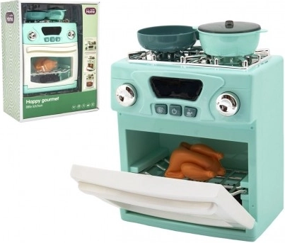 Komplet vključuje pečico, štedilnik, dva lonca in pečeno piščanec za popolno igralno doživetje.