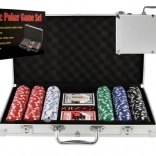 Uživajte v casino vzdušju doma s popolnim poker setom v elegantnem aluminijastem kovčku. Vsebuje 300 žetonov, 2 kompleta kart, 5 kock in dealer button – vse, kar potrebujete za vaš poker turnir in enostavno prenašanje.