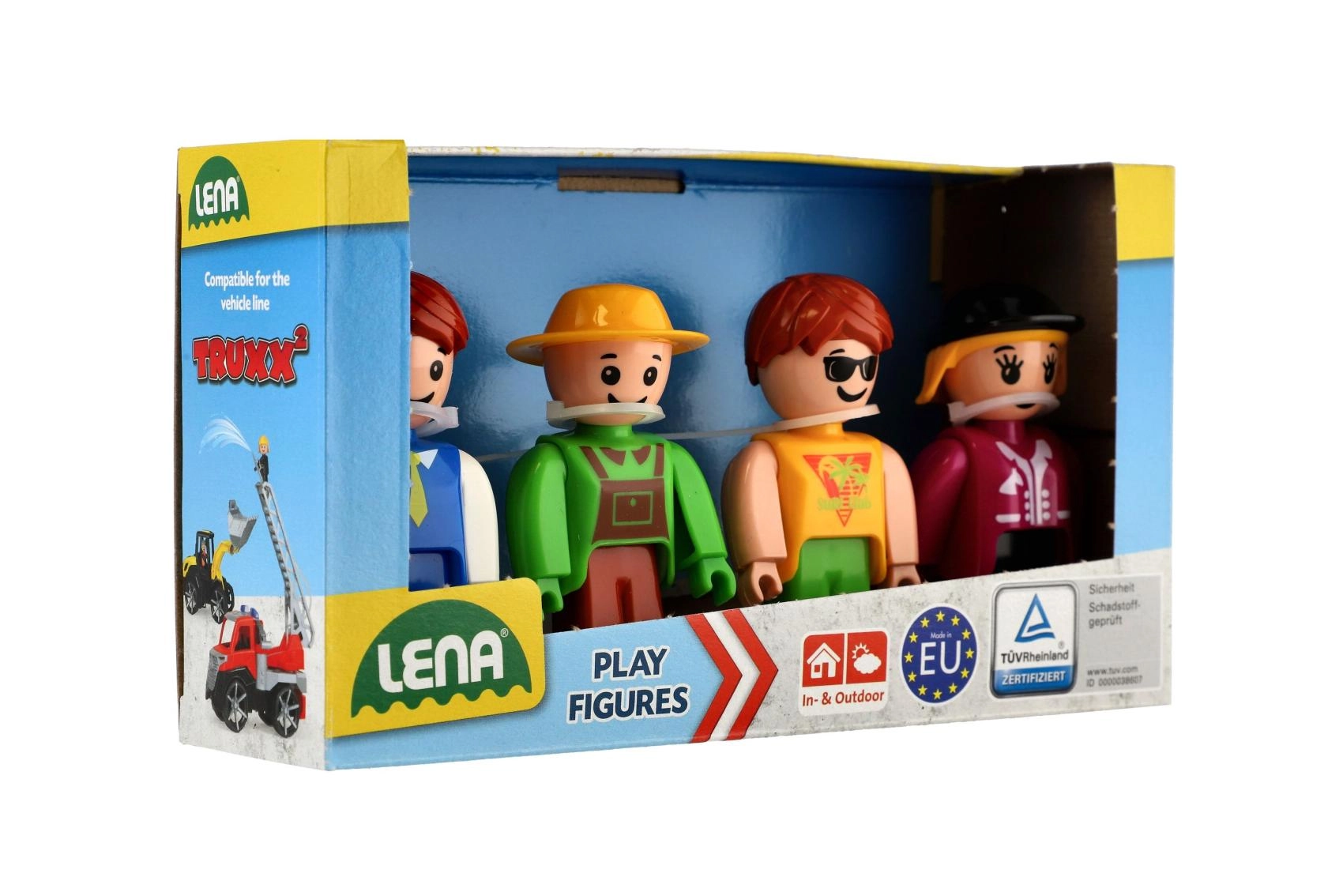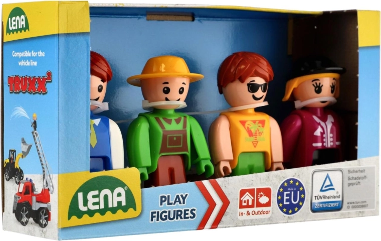 Odkrijte zabavo s štiridelnim kompletom figur LENA: voznik avtobusa, kmet, deklica in jezdkinja. Figurice so združljive z vozili TRUXX, primerne za igro v notranjih prostorih in na prostem ter namenjene otrokom od 12 mesecev. Kakovostna evropska izdelava in certifikat TÜV zagotavljata varnost in trpežnost.
