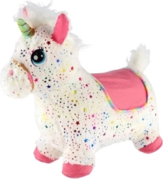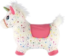 Skakalnik samorog je odličen prijatelj za prve korake in aktivno igro. Stabilno telo iz trpežne gume ter plišasta pralna prevleka z barvnimi zvezdicami zagotavljata udobje in higieno. Ušesa služijo kot ročaji, zato se otrok lahko varno drži in veselo poskakuje doma ali zunaj na mehkih površinah.