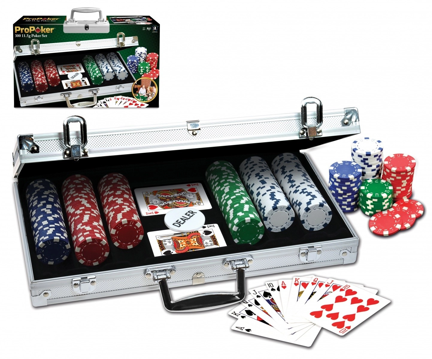 Kompleten poker set v elegantnem aluminijastem kovčku za domače turnirje in zabavo s prijatelji. Vsebuje 300 kakovostnih žetonov s težo 11,5 g v 4 barvah s simboli kock, idealno za avtentično igralno izkušnjo.
