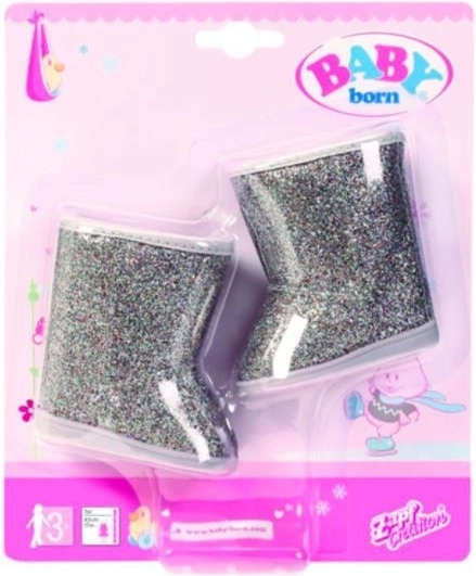 Popestrite garderobo punčke s temi srebrnimi bleščečimi gležnjarji BABY BORN za punčke 43 cm. Slogovni, trpežni in odlični za zimski outfit ter vsakodnevno preoblačenje – popoln dodatek za kreativno igro otrok od 3 let.