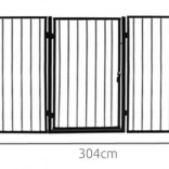 Praktična varnostna ograja za kamin ščiti otroke in hišne ljubljenčke pred vročo površino in odprtim ognjem. Zahvaljujoč petim tečajno povezanimi segmenti jo zlahka prilagodite prostoru, ima preprosto montažo na steno, varovalko proti nenamernemu odpiranju in je združljiva z večino kaminov. Robustna jeklena konstrukcija v črni barvi, skupna širina 304 cm in višina 74,5 cm zagotavljajo zanesljivo zaščito v dnevnem prostoru.