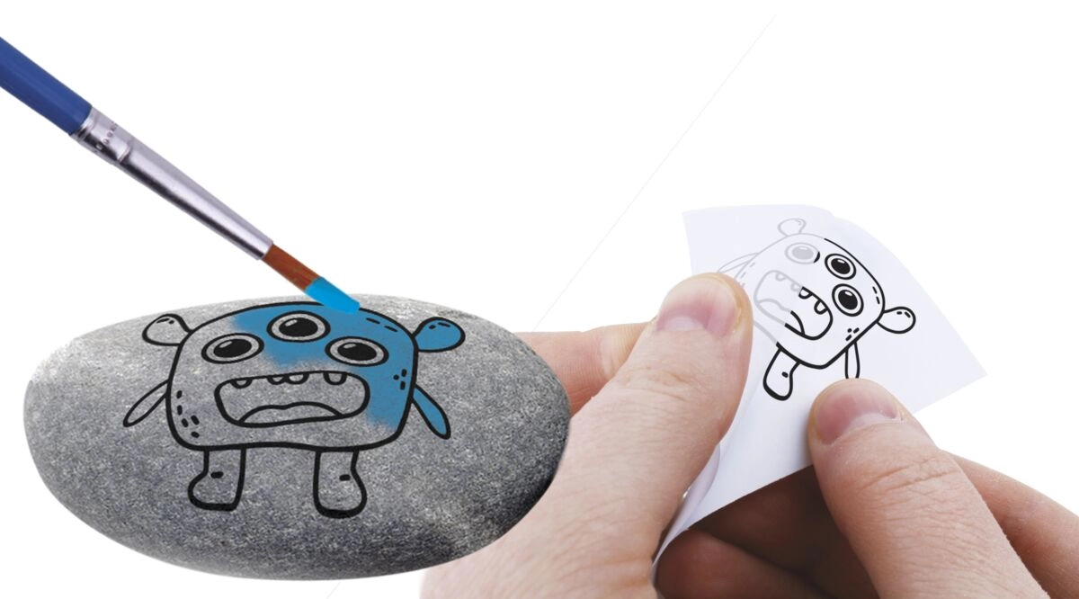 Ta ustvarjalni komplet spremeni navadne kamenčke v vesele pošastke, ribice, obraze in druge izvirne dekoracije. Dovolj je nalepiti motiv z nalepk, dodati premikajoča se očesca in okrasiti z šestimi živahnimi barvami. Zahvaljujoč priloženemu čopiču in gladkim prodnikom bodo otroci ustvarili čudovite izdelke tudi brez predhodnih izkušenj.