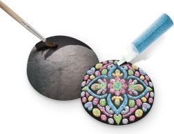 S tem ustvarjalnim setom zlahka ustvarite učinkovite mandalne vzorce in sijoče motive na gladkih kamnih. Zahvaljujoč kombinaciji črne podlage, kovinskih barv in samolepilnih kamenčkov bodo vaše dekoracije izstopale z izrazitim kontrastom in bleščanjem. Slikanje na kamenčke je odličen način, kako se sprostiti in hkrati izdelati lepa darila ali dodatke za dom in vrt.