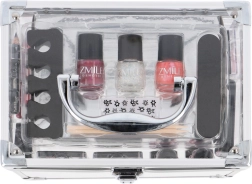 V enem kovčku dobite 16 senčil za oči, 2 rdečili, puder, 3 šminke, svinčnik za oči, 4 glose (2 klasična + 2 kremna), 3 lake za nohte in dodatke za urejanje nohtov.