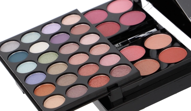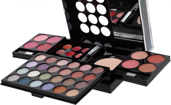 - 24× senčilo za oči, 8× rdečilo za lica, 6× kremni glos za ustnice, 1× puder, 1× maskara, 1× set 4 aplikatorjev/čopičev, vgrajeno ogledalo