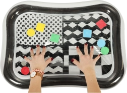 Kontrastna vodna podloga je zasnovana za senzorično stimulacijo majhnih otrok. Izdelana je iz visoko kakovostnega materiala in opremljena s črno-belim vzorcem, podloga ponuja vizualno stimulacijo, medtem ko barvne oblike znotraj tekočine zagotavljajo interaktivno zabavo. Otroci lahko opazujejo oblike, ki plavajo po vodi, kar jih spodbuja k igri in koncentraciji.