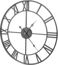 Odprt kovinski okvir poudari barvo stene, izrazite rimske številke in vitki kazalci pa prostoru dodajo retro/loft značaj. Zlahka ga uskladite z modernim in klasičnim pohištvom.