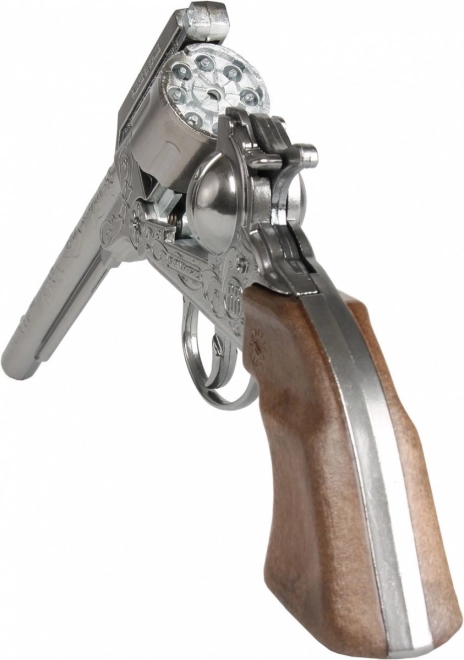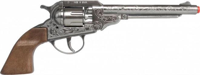 Srebrni revolver, ki je del seta, je osmokaliberni in bogato graviran, kar dodaja avtentičnost vsaki streljačini. Šerifova značka vas potem povzdigne v pravega stražarja zakonov.