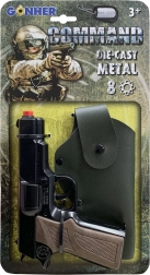 Policijska pištola Command je zasnovana s podrobno kovinsko konstrukcijo in plastičnim ročajem, ki spominja na pravo orožje.