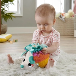 Šumeč trebušček, presenetljiva melodija v notranjosti in piskajoč nosek ohranjajo pozornost dojenčka ter spodbujajo razumevanje vzroka in posledice.