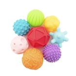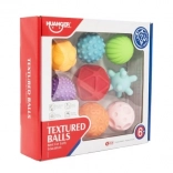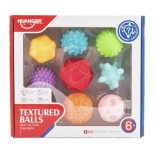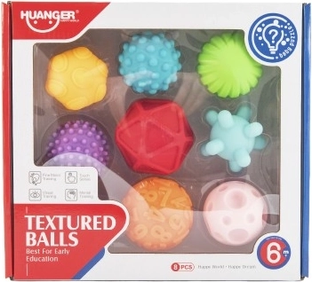 Ta set teksturiranih žogic je idealen za otroke od šestih mesecev starosti. Izdelane so iz silikonskega materiala, ki nudi prijeten dotik in omogoča enostaven prijem. Različne teksture na površini žogic spodbujajo senzorično zaznavanje.