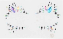 Set ponuja harmonične kombinacije modrih, turkiznih in prozornih kristalov z mavričnim učinkom, ki poudarijo oči in lica. Ob skrbni uporabi je mogoče ponovno lepljenje (lepljivost se postopoma zmanjšuje). Idealen dodatek za pust, maškarade, tematske zabave, nastope in fototočke.