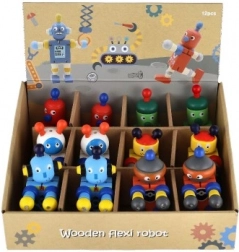 Ti barviti leseni roboti so idealni za prve gradbene in igralske (vloge) igre. Zaradi gumijastih spojev se zlahka upogibajo, držijo poze in spodbujajo otroke k ustvarjalnemu pripovedovanju zgodb. Trpežen les in gladki robovi zagotavljajo varno in prijetno rokovanje tudi za najmlajše.