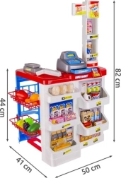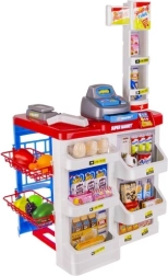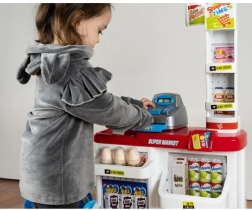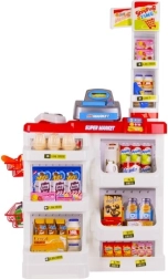 Otroški supermarket je idealen za male prodajalce in kupce. Vsebuje funkcionalno blagajno z izvlečnim predalom, čitalnik črtnih kod z zvokom, trgovinsko tehtnico, police z izdelki in nakupovalni voziček. Zahvaljujoč bogati opremi otroci vadijo računstvo, komunikacijo in samostojnost.