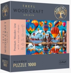 Odkrijte prvovrstne lesene puzzle TREFL iz linije Wood Craft Origin z motivom pisanih toplozračnih balonov nad jezerom z labodi. Zaradi lasersko natančnega izreza imajo koščki gladke robove in se popolno prilegajo. Puzzle so obojestranske, vsebujejo edinstvene oblikovane koščke in prihajajo v ekološki embalaži brez plastike – idealna izbira za zahtevne ljubitelje sestavljank in kot darilo.