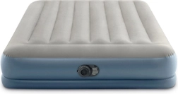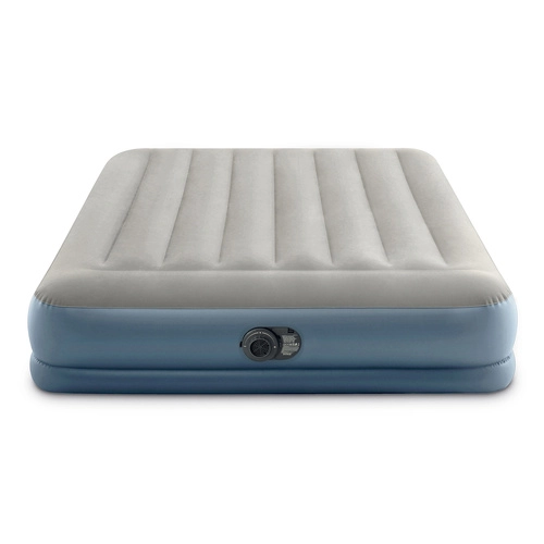 Dvojna napihljiva vzmetnica INTEX s tehnologijo Dura-Beam Fiber-Tech ponuja čvrsto oporo, udobno velur površino in hitro napihovanje ter izpihovanje zahvaljujoč vgrajeni električni črpalki v približno 3 minutah. Idealna kot udobna postelja za goste, za dom in kampiranje, z nosilnostjo do 272 kg in enostavnim shranjevanjem.