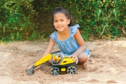 Roko z lopato upravljate z udobnim ročajem, zato lahko otroci resnično nakladajo in prestavljajo pesek kot pravi bager.
