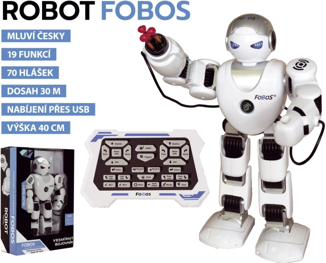 Robot FOBOS otrokom prinaša veliko zabave in učenja. Po zagonu prižge oči, predvaja kozmične zvoke in začne govoriti češko – skupaj obvlada 70 izjav. Zaradi tekočega gibanja nog hodi in se obrača, premika roke ter prikazuje plesne in bojne načine. S priloženim blasterjem in 5 izstrelki postane odličen akcijski partner.