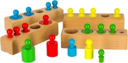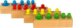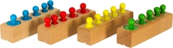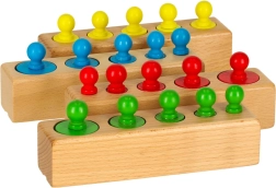 Ta lesena montessori sestavljanka s pisano obarvanimi valji je idealen pripomoček za celosten razvoj otroka. Vsaka barva predstavlja drugačno višino in širino, kar spodbuja logično razmišljanje, razvrščanje in primerjanje. Preprost dizajn in naravni materiali popolno odražajo filozofijo Montessori.