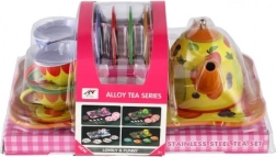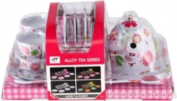 Ta otroški pločevinasti čajni set prinaša otrokom veselje ob namišljenem strežbi in družabni igri. Set je izdelan iz kovine, zato je trden, vzdržljiv in lahek za majhne roke. Barviti motivi cvetlic, metuljev ali sadja spodbujajo ustvarjalnost in domišljijo, medtem ko servirni pladenj olajša prenašanje in igro.