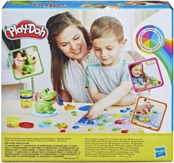 Vstopite v svet ustvarjalnosti s setom Play-Doh Starters Žaba – učenje barv. Otroci žabi iztisnejo dolg zabaven jezik, ustvarjajo metulje, polže in muhe s pomočjo modelčkov ter se učijo razvrščanja po barvah na priloženi podlagi. Priloženi so 4 lončki modelirne mase Play-Doh in varna orodja za majhne roke.