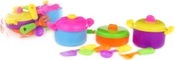 Set je odličen dodatek k otroškim kuhinjam in nudi varno ter zabavno igro. Otroci lahko “kuhajo” za družino in prijatelje, se učijo osnov pogrinjanja ter razvijajo svojo domišljijo.
