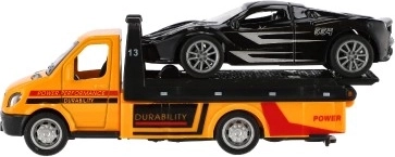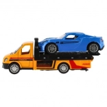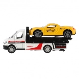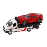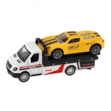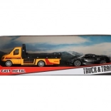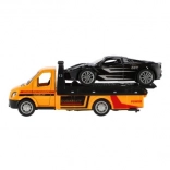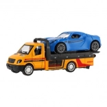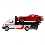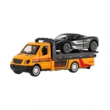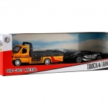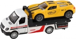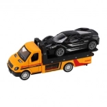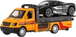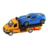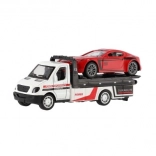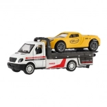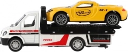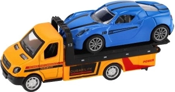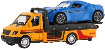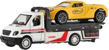 Ta realistično izdelano vlečno vozilo z naloženim športnim avtomobilčkom razširi otroški vozni park z priljubljenim delovnim vozilom. Z vzmetnim navijanjem (pull-back) je dovolj pritisniti, spustiti in opazovati akcijo – popolno za prizore iz mesta, s ceste ali delavnice.