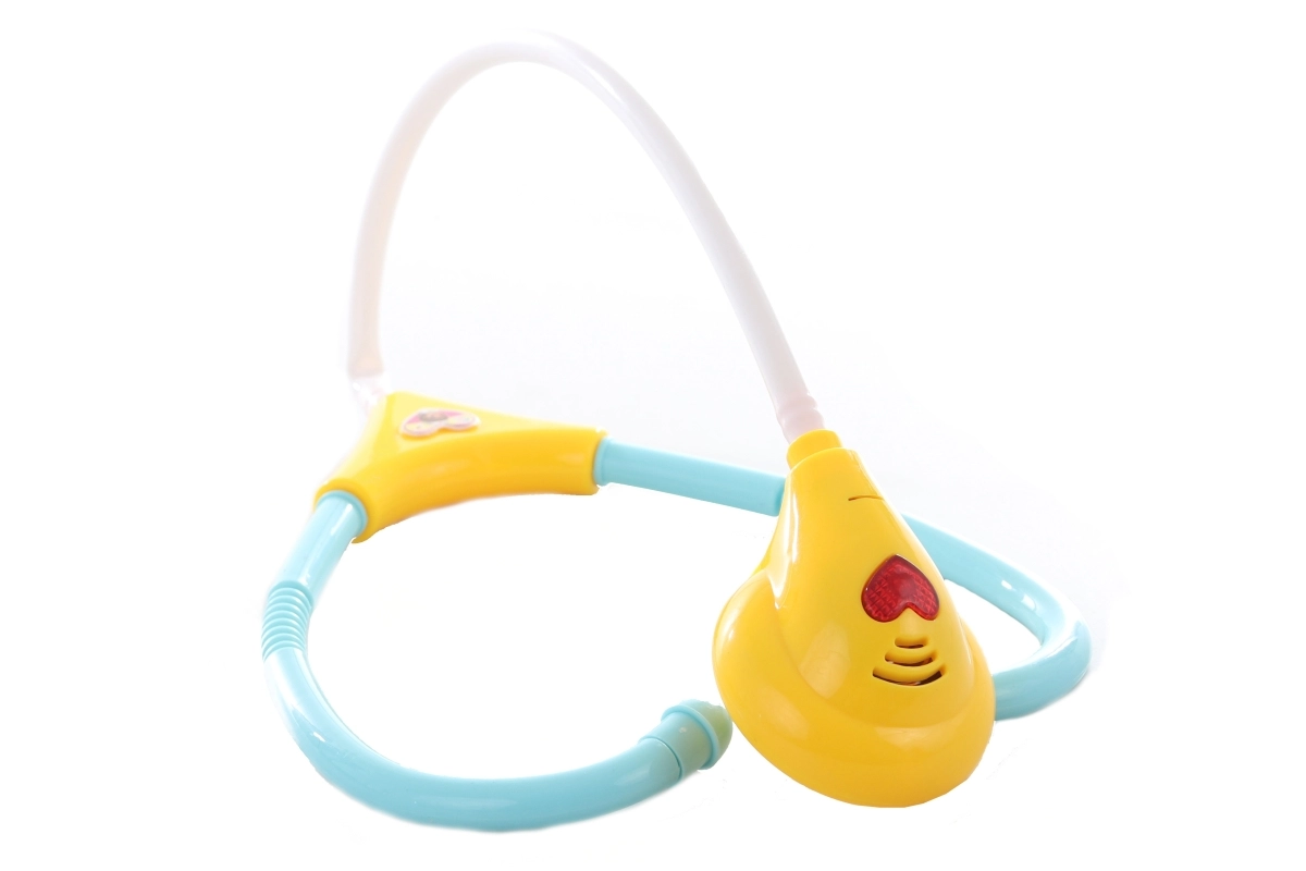 Stetoskop, ki ga napajajo 3× AG13 (vključeno), doda igri zdravnika in zobozdravnika več realističnosti – brez potrebe po dodatnem nakupu baterij.