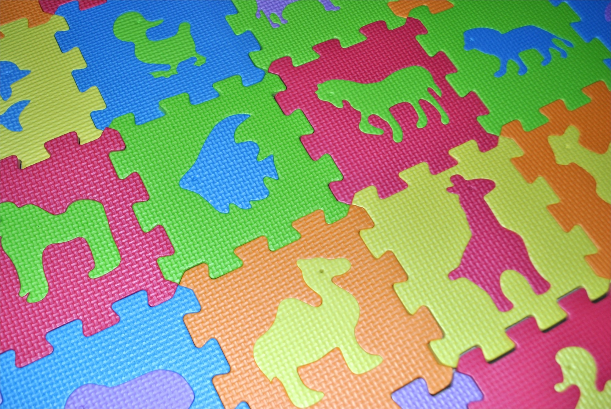 Zabavne in varne pene puzzle z živalicami razveselijo vsakega otroka ter hkrati zaščitijo tla in kolena med igro. Deli so pralni, zdravju neškodljivi in se preprosto sestavijo v mehek igralni tepih. Idealno za domače igralnice in otroške sobe.