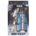 Set vsebuje raketo, satelit, figuro kozmonavta, nadzorni center in druge tematske elemente, ki skupaj ustvarjajo realistično okolje. Praktične dimenzije olajšajo rokovanje in shranjevanje.