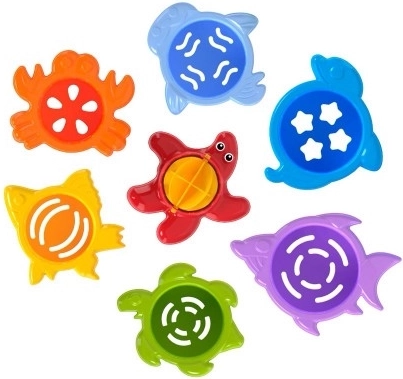 Primerno za kad, prho in peskovnik. Trpežna plastika se zlahka čisti, izrazite barve pa pomagajo vaditi barve, štetje in razvrščanje. Varno za majhne otroške roke od 12 mesecev dalje.