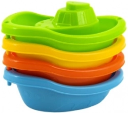 Komplet vsebuje štiri čolničke v živahnih barvah – modri, oranžni, zeleni in rumeni, ki jih je mogoče enostavno zložiti za preprosto shranjevanje. Oblika in barve čolnov spodbujajo otroško domišljijo in ustvarjalnost med vodno zabavo.