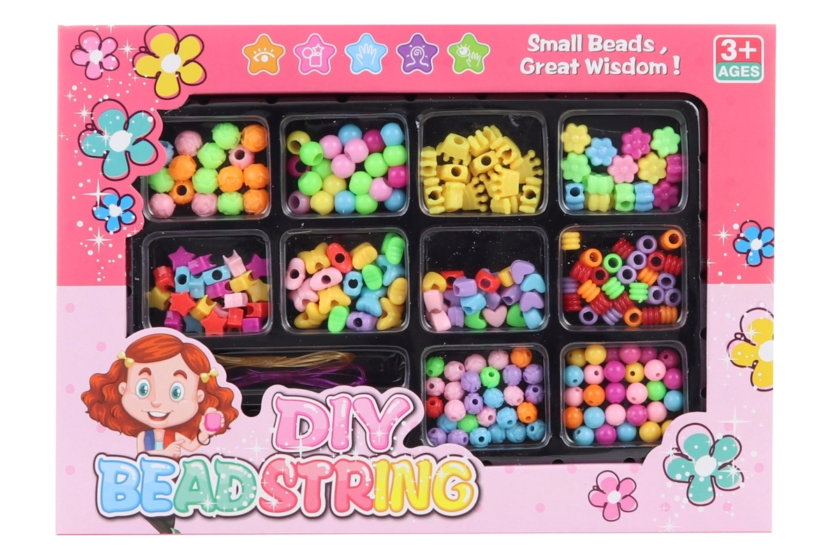 Del pakiranja so tudi vrvice za nizanje, zato lahko začnete ustvarjati takoj. Ustvarjanje s kroglicami spodbuja potrpežljivost, osredotočenost in močno razvija fino motoriko.