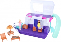 Ladja, 2 punčki, 6 vrst oblek, pohištvo, kovček in drugi dodatki