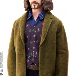 Figurica prikazuje Siriusa Blacka v značilnem zelenem plašču in s čarovniško paličico, poudarja realistične detajle, kot so kodrasti lasje in brada.