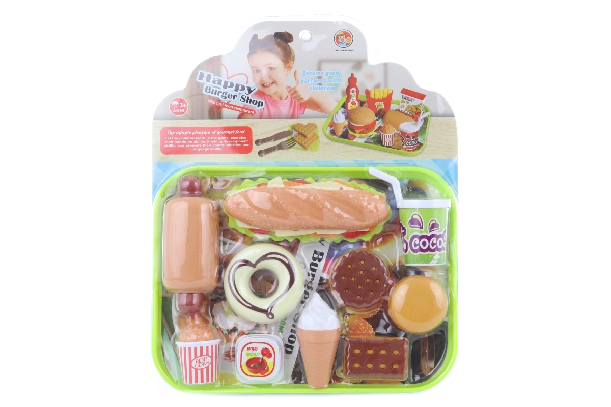 Del seta so hot dog, donut, piškoti, sladoled, napitek in drugi dodatki za realistično igro kuhanja. Komplet je odlična ideja za darilo in čudovito dopolni otroško kuhinjo ali trgovino.