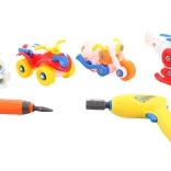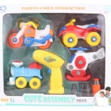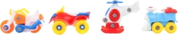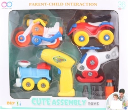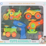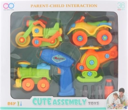 S tem kompletom vozil za privijačenje bo vaš otrok doživljal ure zabave in učenja. Zahvaljujoč priloženemu akumulatorskemu vrtalniku (2 AA bateriji, baterije niso priložene) si otroci lahko sami sestavljajo in razstavljajo igrače, kar spodbuja razvoj fine motorike.