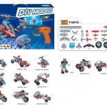Zabavna vijačna sestavljanka z otroškim vrtalnikom in izvijačem razvija fino motoriko, domišljijo in tehnično razmišljanje. Vsebuje skupaj 282 kosov, praktičen vrtalnik na 2× AA bateriji (baterije niso priložene) in navodila z idejami za sestavljanje. Idealna izobraževalna igrača za otroke od 3 let.