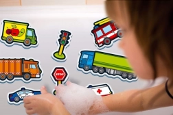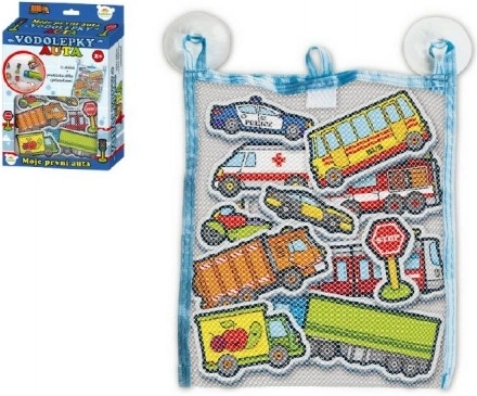 Podajte se na zabavno potovanje v kopalnico z vodnimi nalepkami avtomobilov! Dovolj je, da jih zmočite, in takoj jih lahko pritrdite na kad ali ploščice.