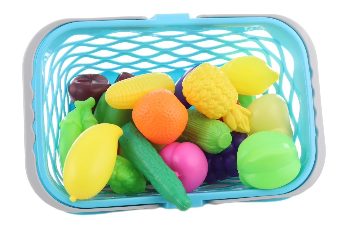 Lahka in trpežna plastika prenese vsakodnevno igro. Otroci zlahka prepoznajo osnovne vrste živil in barve.