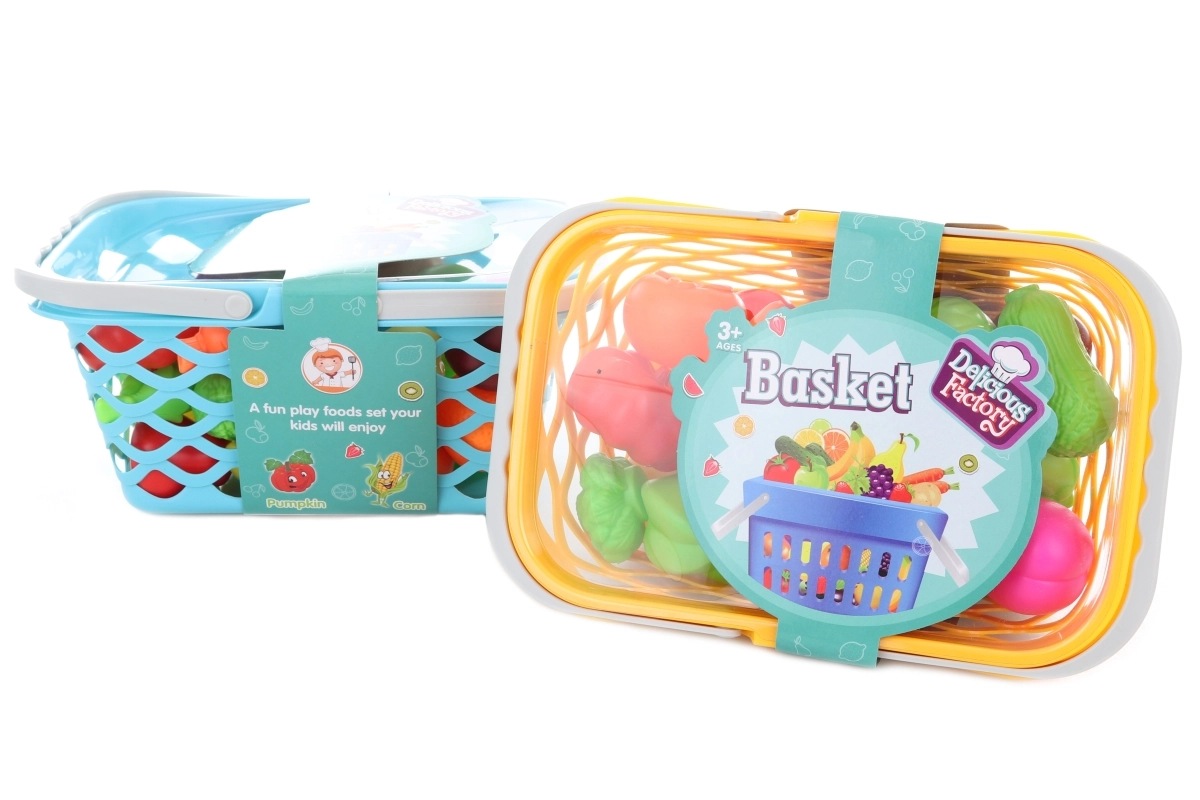 Ta barvit set plastičnega sadja in zelenjave v košarici bo razveselil vsakega malega ljubitelja kuhanja in nakupovanja. Košarica z zračno mrežo in pokrovom služi kot praktičen shrambni prostor in prenosna torba, zato lahko otroci svojo opremo vzamejo na katerokoli igro.