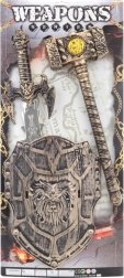 Opre mitega viteza s popolno seto za tematske igre. Seta vključuje tri osnovne elemente – meč, ščit in gorjačo – ki spodbujajo ustvarjalnost, igro vlog in skupno zabavo s prijatelji ter sorojenci.
